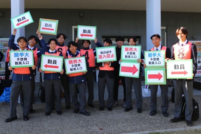 3203人の観客がスタンドを埋めたマッチデー。試合準備や観客の誘導、表彰式のサポートなど、関西学生サッカー連盟の学生幹事・準幹事も活躍しました。みなさん今シーズンお疲れ様。そしてありがとう!