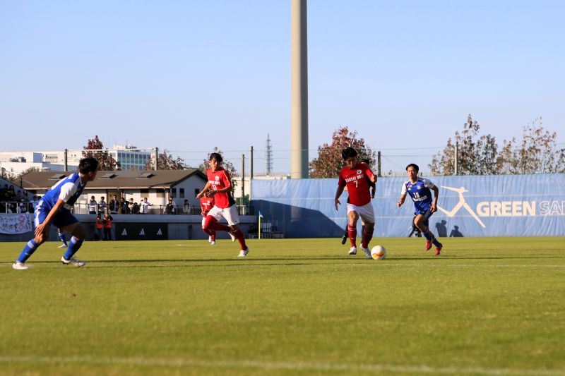 第1試合は同志社vs甲南大学。試合が動いたのは後半。55分に甲南大がFW13伊藤小次郎選手のゴールで先制すると、84分には交代間もないFW32宮原貫太選手が追加点をあげます。同大もアディショナルタイムにFW9野瀬駿介選手が得点ランク6位となるゴールを決めて1点差に追い上げますが、試合は2-1甲南大が勝利しました。